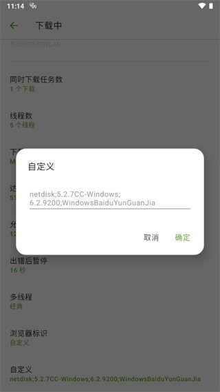 5、最后在 “Custom项” 中输入netdisk;5.2.7CC-Windows;6.2.9200;WindowsBaiduYunGuanJia;