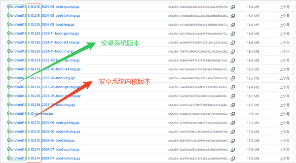 1、刷入内核的方式有很多,这里主要讲的是手机非root时的刷入方式,手机在非root时刷入内核需要下载boot.img文件,这里可以在KernelSU Next github资源链接中下载对应手机安卓内核版的boot.img,前面的是安卓系统版本,后面才是内核版本,用户可以在自己手机中的关于手机界面中可以查看到内核版本
