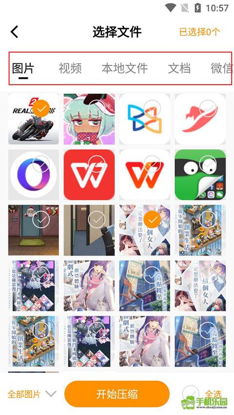 2、手机相册中的照片、视频可轻松选择打包压缩。