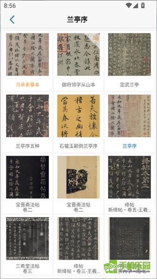 2、选择一个字帖点击进入,比如“兰亭序”;