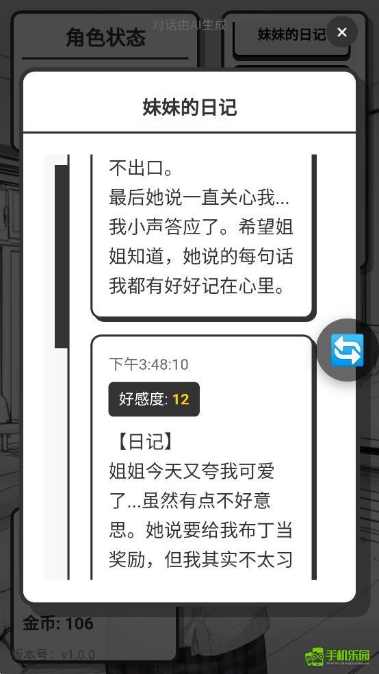 5、点击右上角的日记可以查看妹妹的内心活动日记。