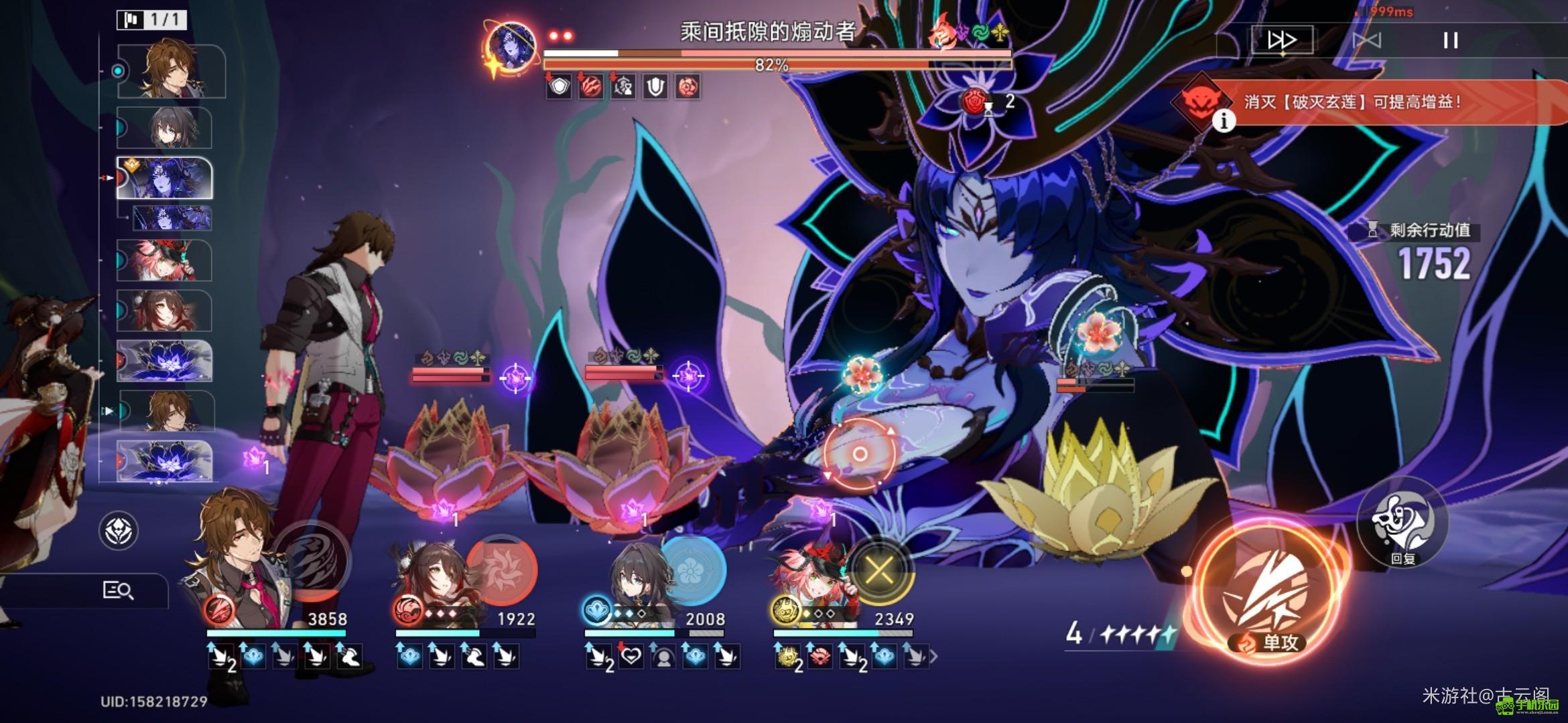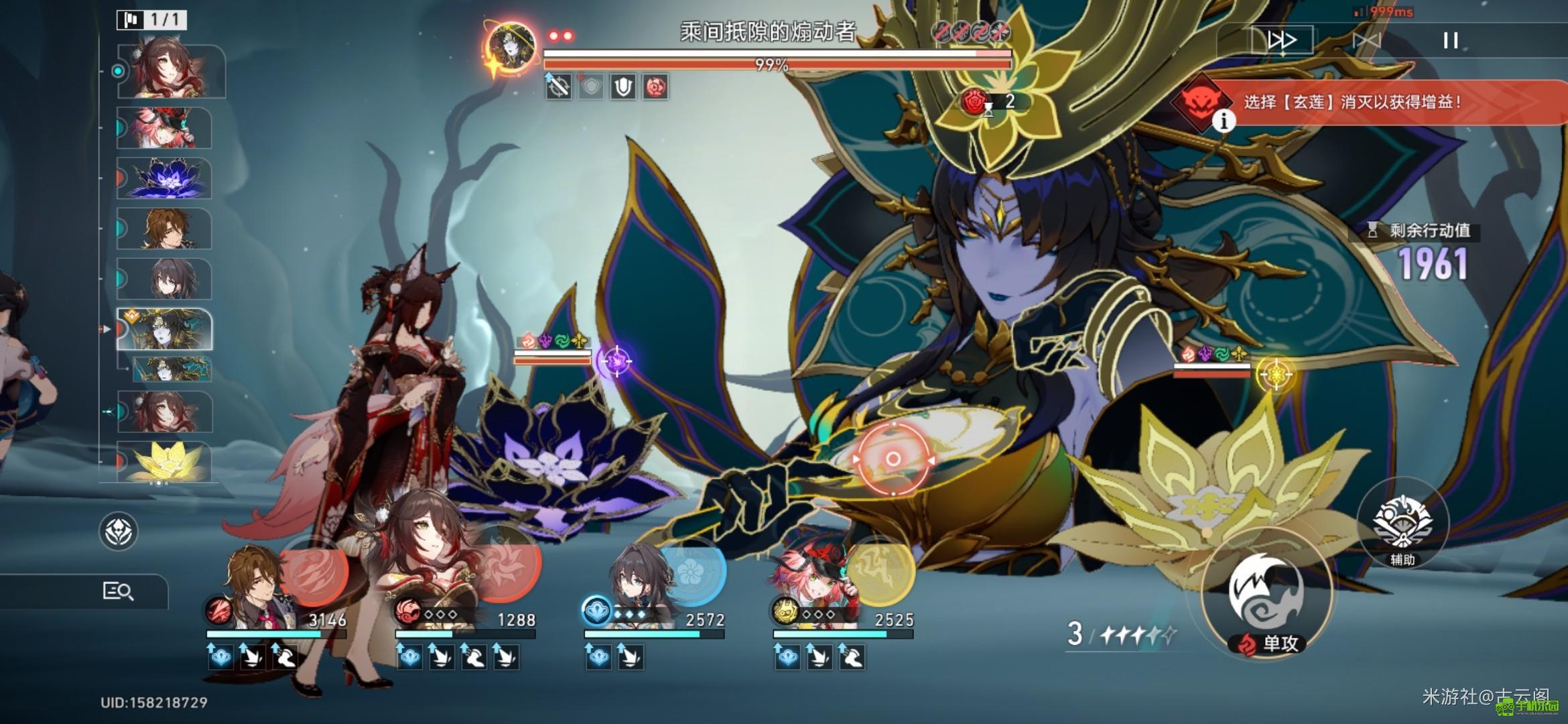 - 后续推进:击破首个小怪后,火力转向主怪,乱破群攻顺带清理剩余目标;期间若血量低于70%,优先击杀刷新的黑莲,能量不足则击杀金莲,保持“破韧→击退→集火”的良性循环,第一幕可在4回合内结束战斗。