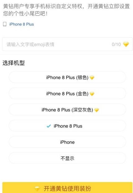 1、开通黄钻,即可享受手机标识自定义特权。
